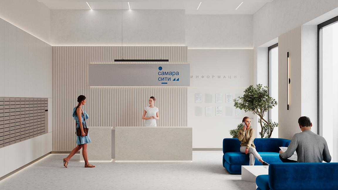 В фойе домов «Самара-Сити» запланированы современные функциональные лобби, определяющие не только статусность ЖК, но и упрощающие быт резидентов, создающие ежедневный комфорт: здесь можно провести мини-встречу, подождать такси, почитать книгу и договориться с консьержем о курьерской доставке в ваше отсутствие.