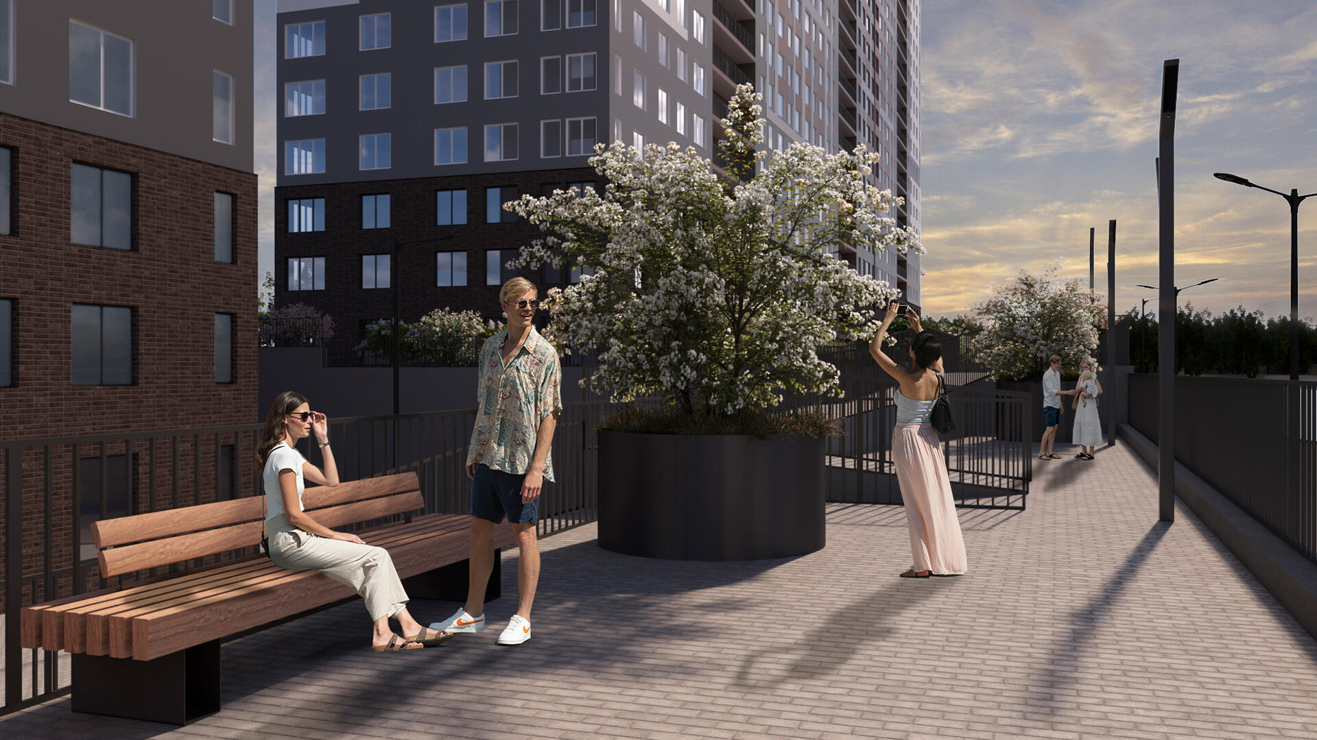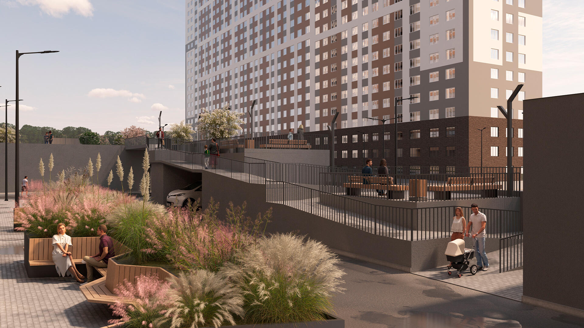 Просторные холлы, сквозные входные группы, зона променада для беспрепятственного сообщения между террасами дворов домов, – всё это формирует невероятно комфортный и неповторимый архитектурный ансамбль жилого комплекса.